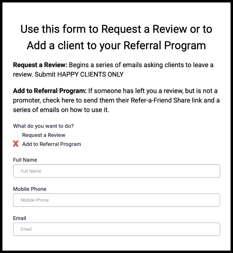 Over the next several months, the Promoter will receive a series of messages explaining how to use their Reward Link and encouraging them to share your business.
