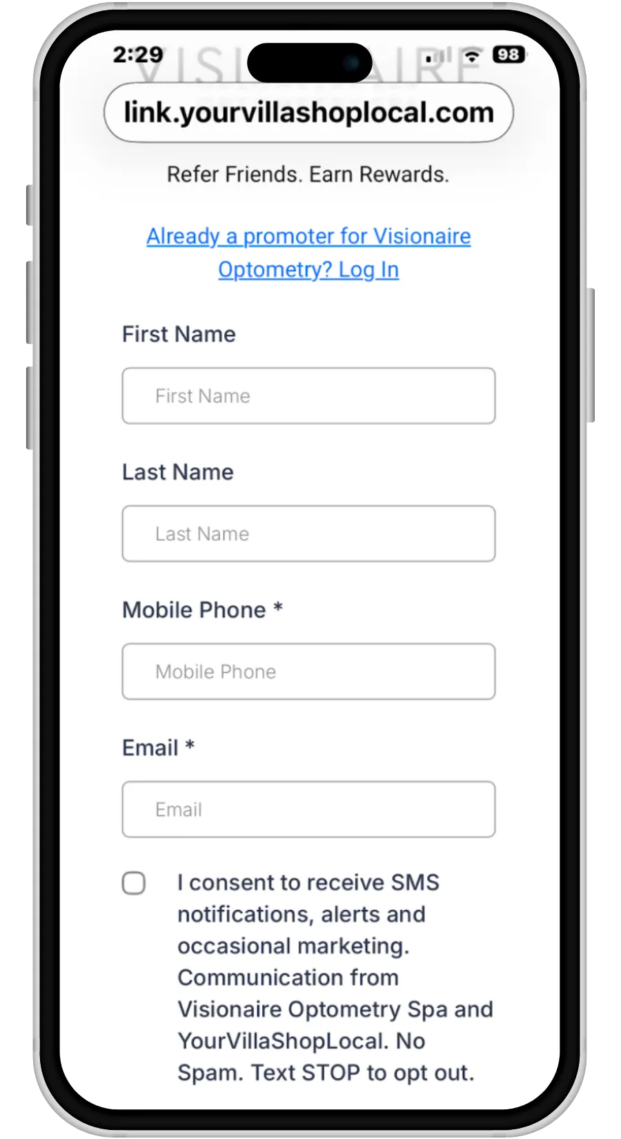 Your staff can use this form to automatically add a promoter to your program.