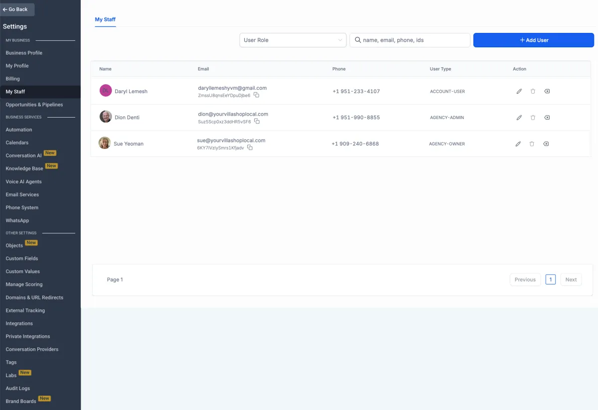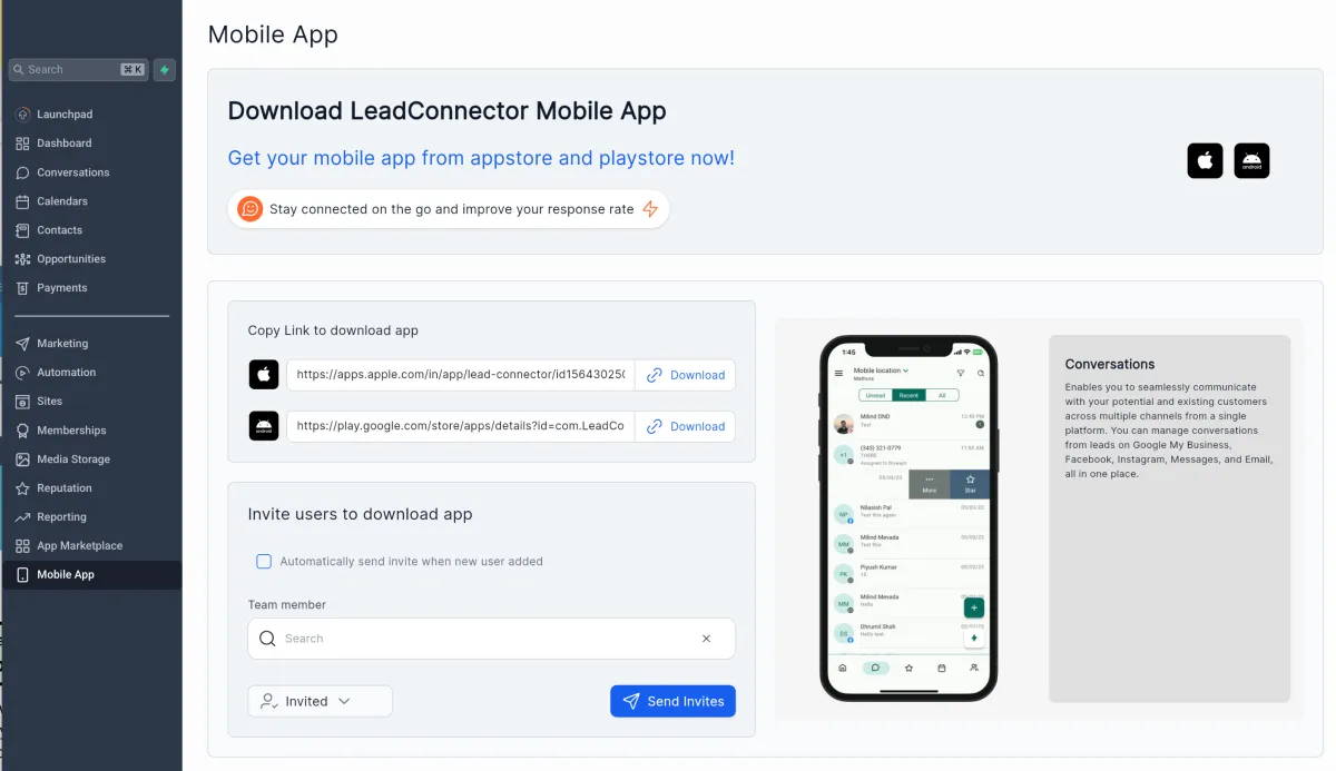 Give access to Conversations, Contacts, and Opportunities to enable client engagement.